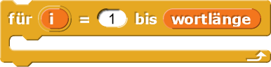 Wir benötigen also eine Wiederholung mit einem Index i, der von i = 1 alle Werte bis i = wortlänge durchläuft:
